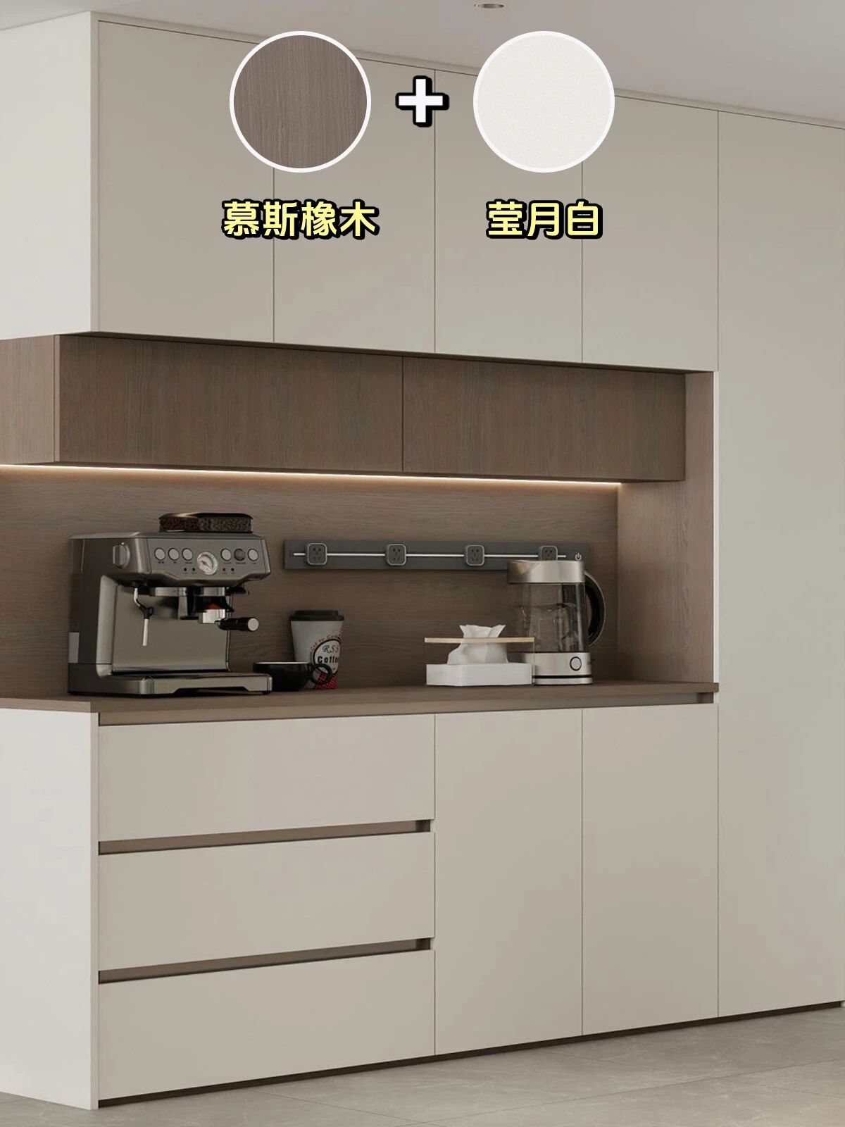 🎨③W107F#意式(shi)奶凍色+Y095B#橡木(mù)同步木(mù)紋