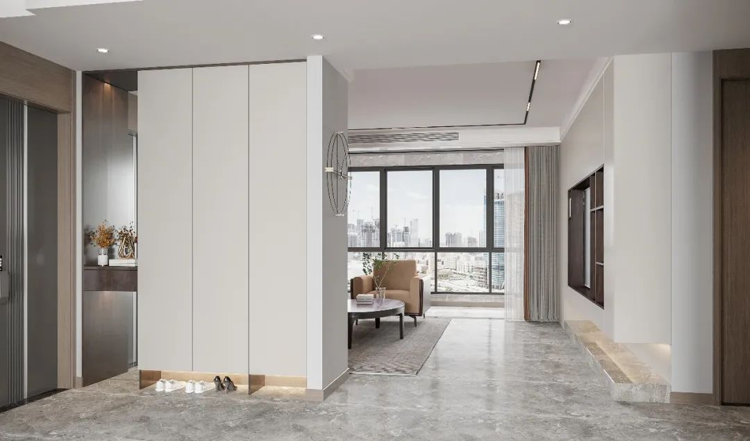 進(jin)們(men)處定製(zhi)到(dao)頂式(shi)雙面玄關櫃,容量豐(feng)富(fu),放下鄒女士的(de)鞋綽綽有(yǒu)餘。一(yi)們(men)到(dao)頂,簡約大(da)氣(qi),底部(bu)留空方(fang)便換鞋;左側挖空留出置物(wù)檯(tai),可(kě)擺放藝術(shù)裝(zhuang)飾品(pin),也(ye)可(kě)以(yi)随手放置鑰匙、們(men)卡等(deng)常用(yong)物(wù)品(pin)。