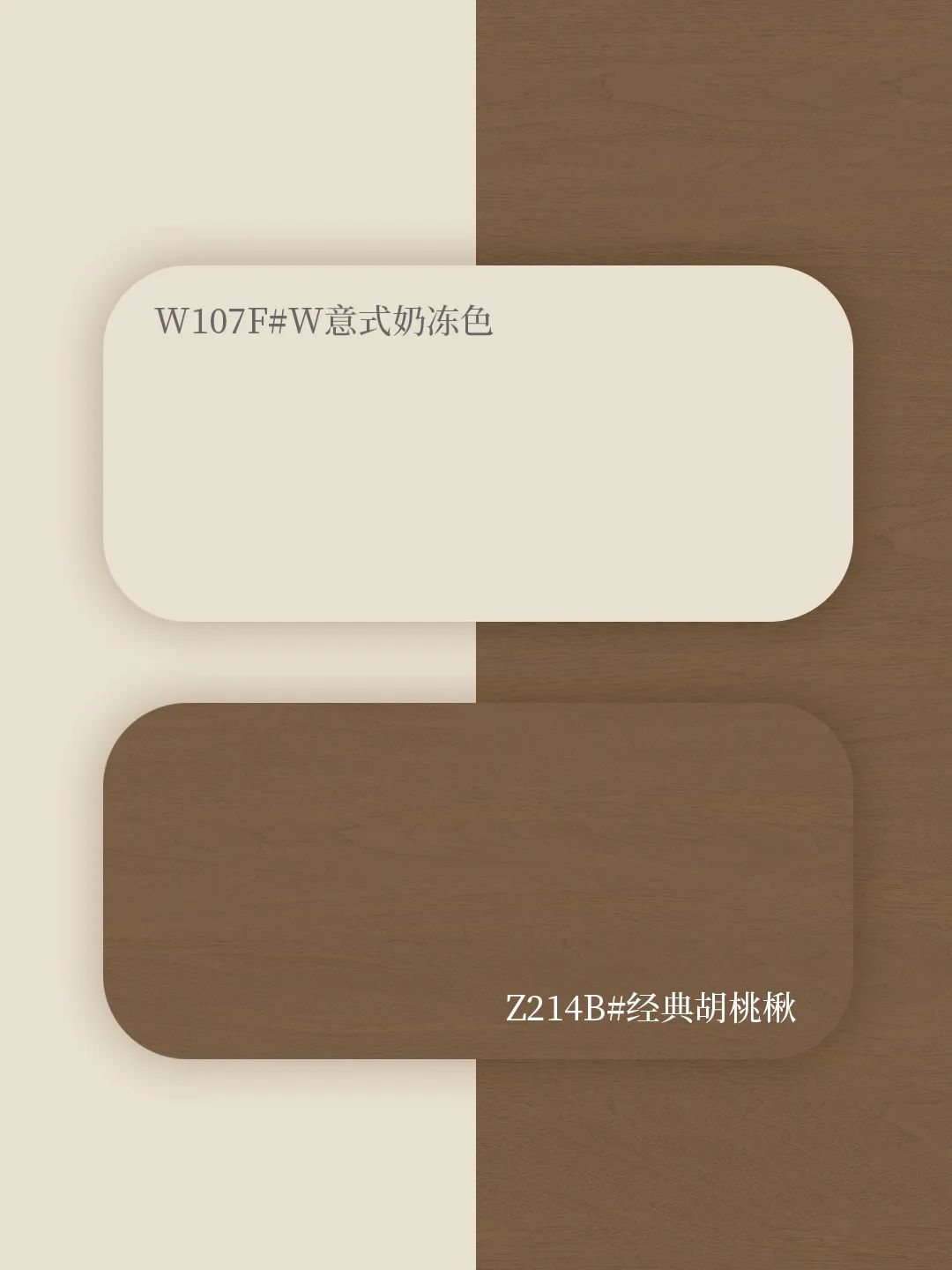 ①W107F#W意式(shi)奶凍色+Z214B#經(jing)典胡桃楸